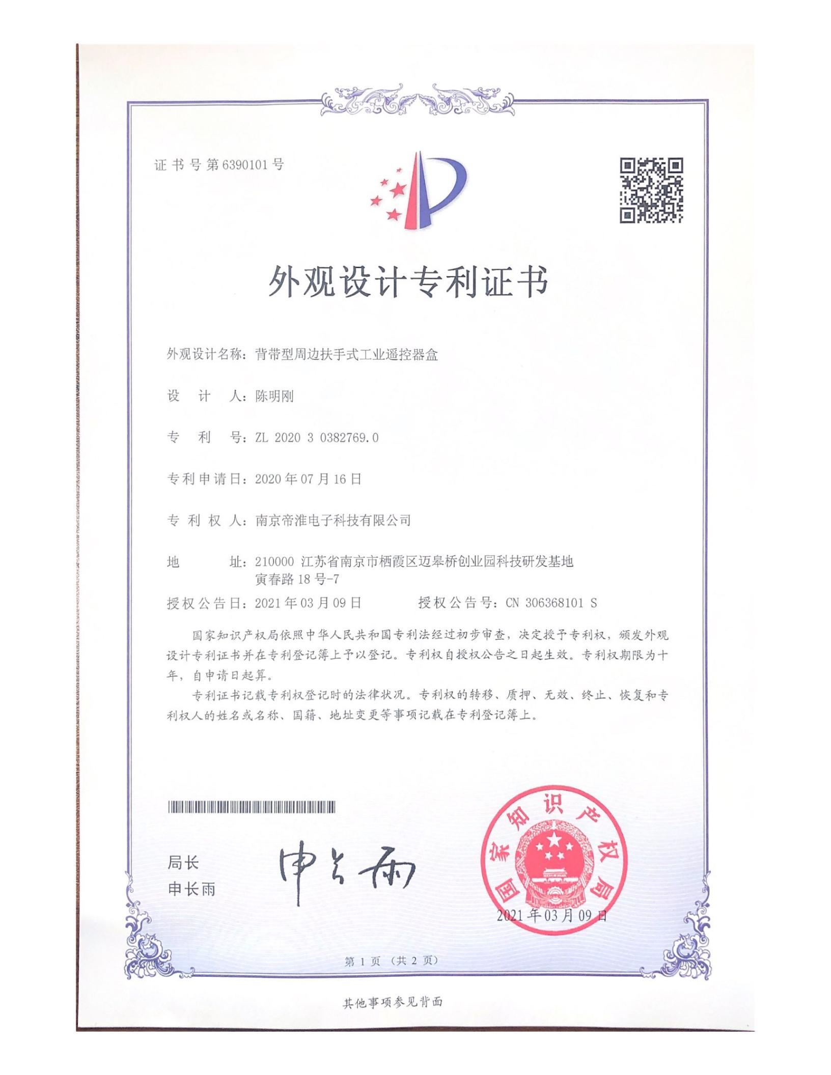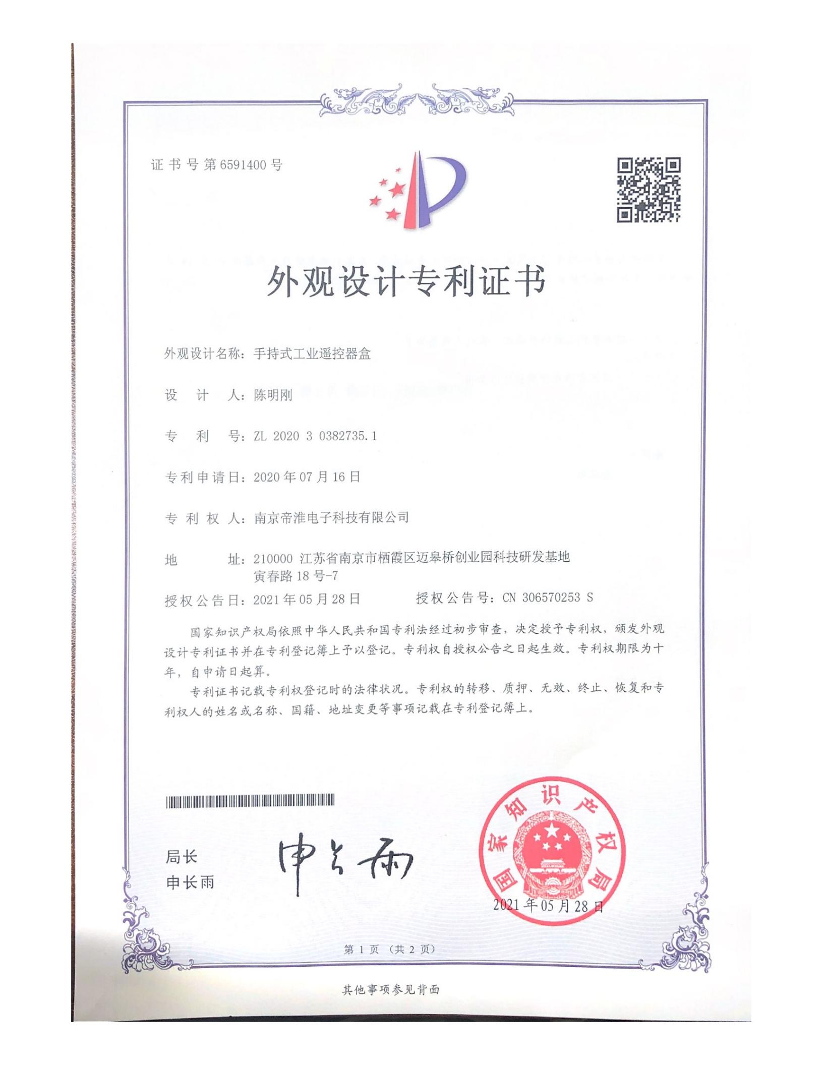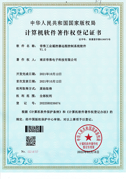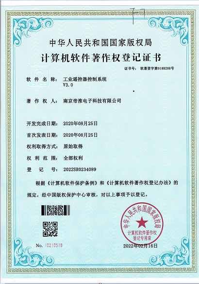 南京帝淮电子科技有限公司,国内工业??仄餍幸盗炀笠?,自主研发、定制、非标设计各类工业级无线??仄?、工业级有线控制器、智能化自主算法逻辑的本地控制器等系列产品。已经申请及正在申请的技术专利、外观专利有近三十项左右,并通过了CE欧盟认证、国家级试验检验报告、EMC电磁兼容认证等。